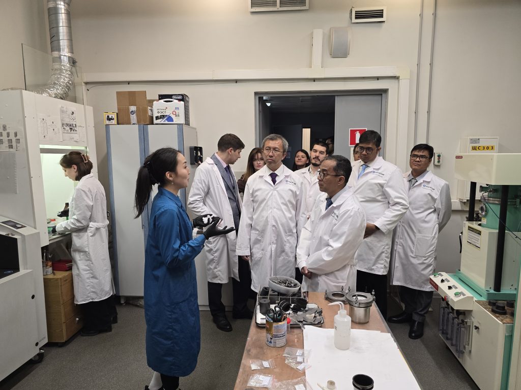 В ходе технического тура делегация ознакомилась с основными научно-исследовательскими и технологическими участками института. Гости посетили ряд ключевых лабораторий, где были продемонстрированы технологии гидрометаллургической переработки минерального сырья, электролитического получения РЗМ (Ce, Nd, Pr, и сплава Nd-Fe), металлтермического восстановления фторидов, хлоридов и оксидов РЗМ, карботермического производства самария (Sm) для Sm-Co магнитов, участок получения сплавов РМ и РЗМ, порошков тугоплавких металлов. Особое внимание уделено технология экстракционного разделения РМ и РЗМ и синтезу высокочистых галогенидных соединений. Также делегации представили современные решения в области переработки литий-ионных аккумуляторов, получения материалов для химических источников тока, выращивания полупроводниковых и сцинтилляционных кристаллов, а также перспективные разработки в области водородной энергетики.